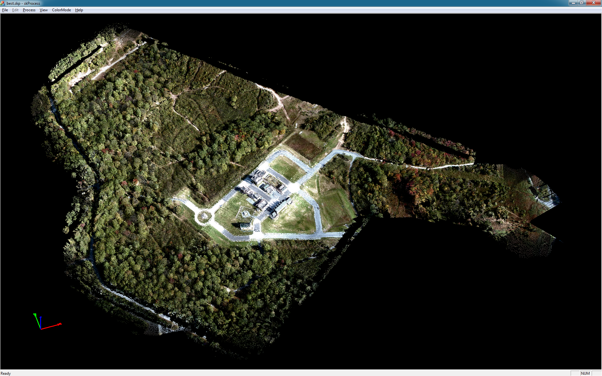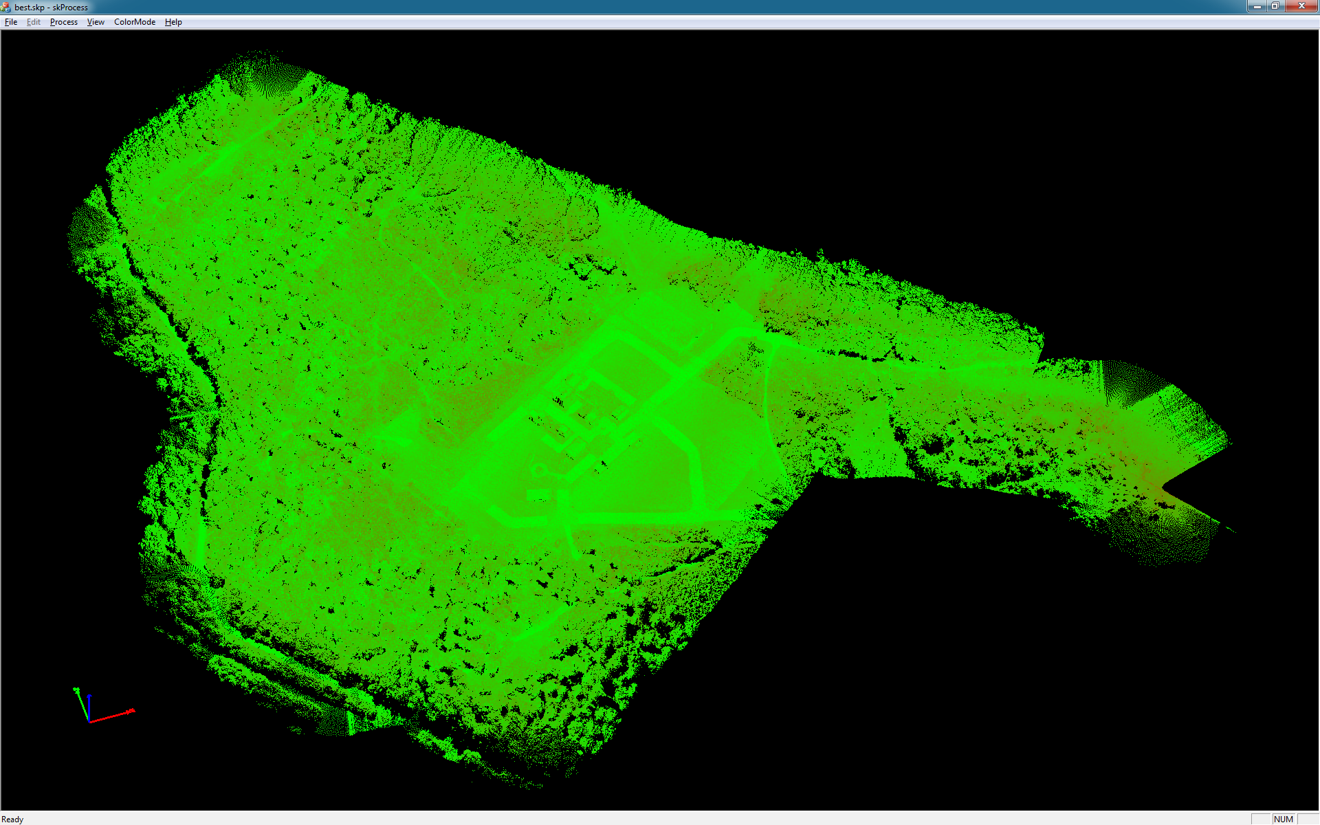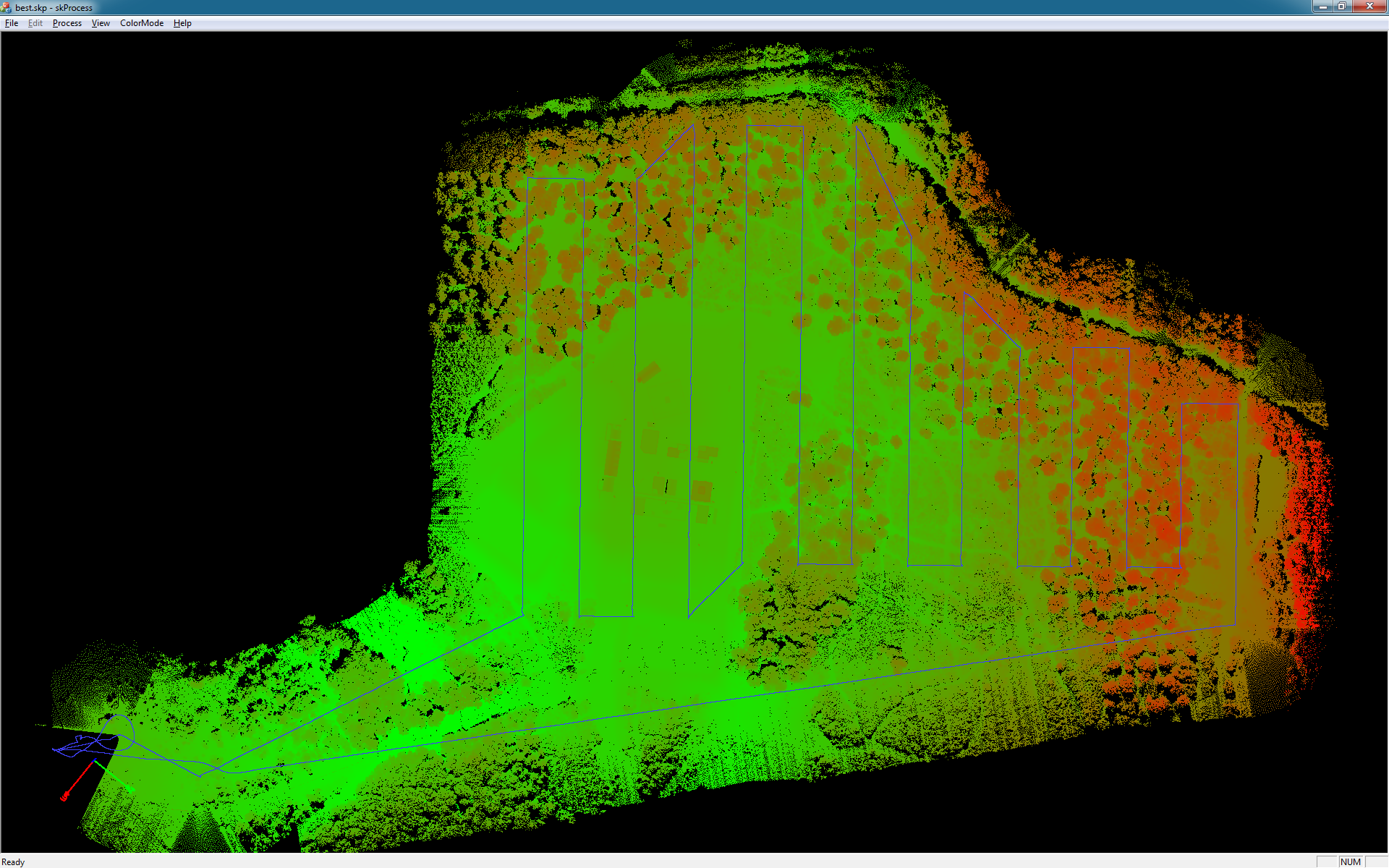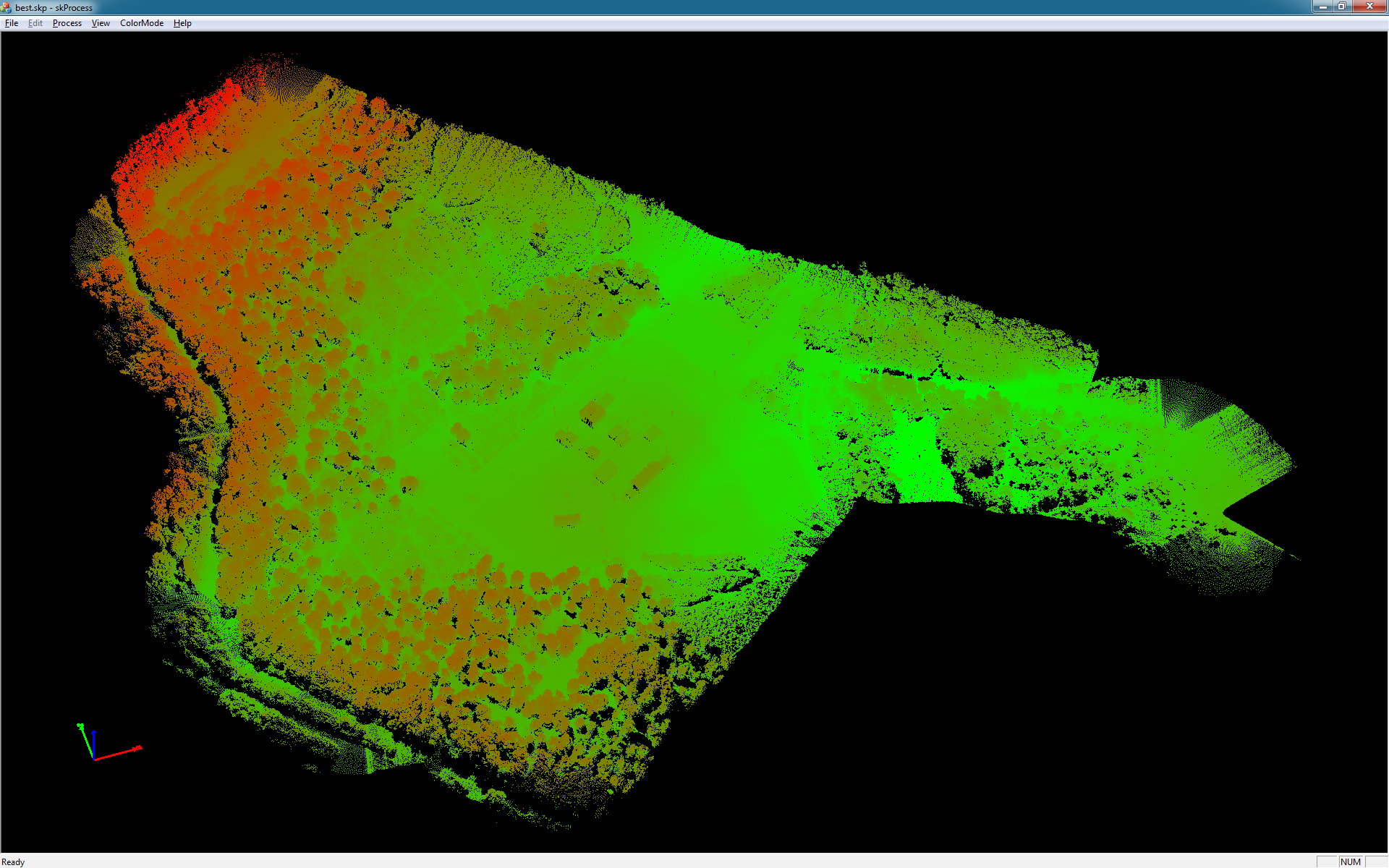 A point cloud is a collection of three-dimensional point coordinates. The SkEyesBox generates point clouds that are representative of the environment by systematically shining a low-profile laser beam at objects and measuring the distance, based on the light's time-of-flight, to the illuminated object from a known position and orientation in space. The SkEyesBox scans the laser in a straight line that is orthogonal to the direction of travel which is sometimes referred to as the push-broom configuration. Firing the laser about 100,000 times per second, the SkEyesBox records its position and orientation as well as the angle of the mirror scanning the laser in precise (~ 1 microsecond) synchronization. Using this information, the SkEyesBox can then estimate the absolute global position of reflecting points in real time. Depending on the system configuration, the SkEyesBox also tracks the laser reflection intensity as well as the ambient color of the reflecting point in space.